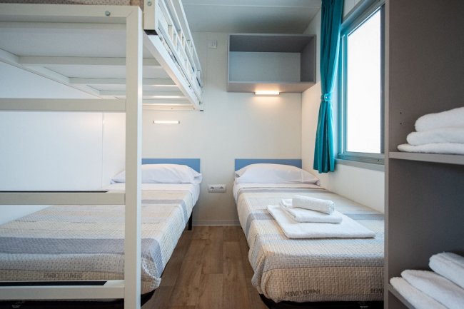 Seconda camera con letto a castello e letto singolo con bagno privato per alloggi superiori le due persone.