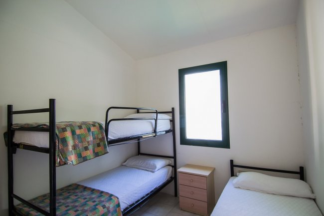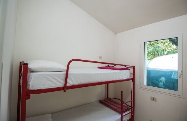 TRILOCALI 5 POSTI: Questi bungalow indipendenti sono composti da cucina, camera matrimoniale, camera con letto a castello e letto singolo (con possibilità di secondo letto a castello) e bagno con doccia. All’esterno troverete una veranda coperta e attrezzata con tavoli e sedie. Sono dotati di aria condizionata.
