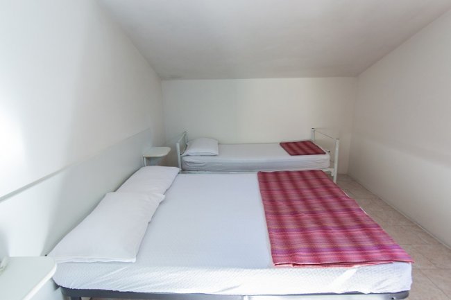 Camera con letto matrimoniale e singolo, armadio a muro.